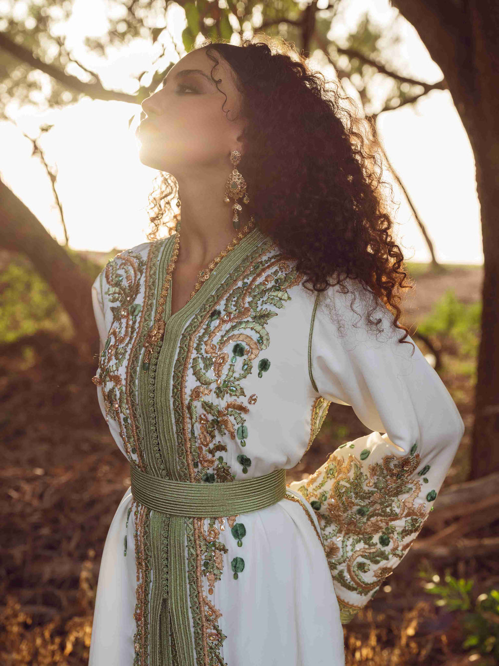 Three rows of sfifa in hrir frame the silhouette with refinement, in a perfect balance between tradition and modernity.
