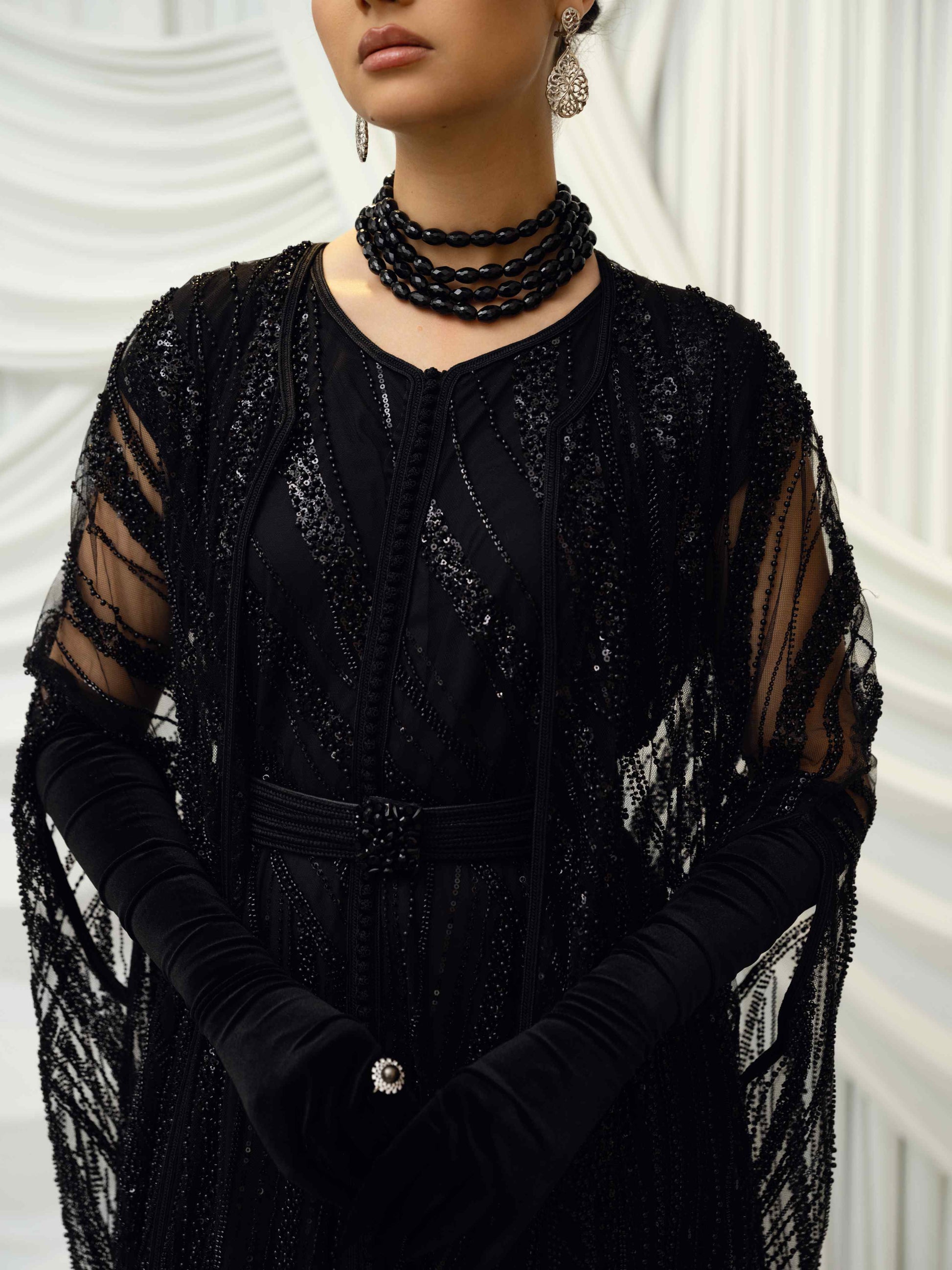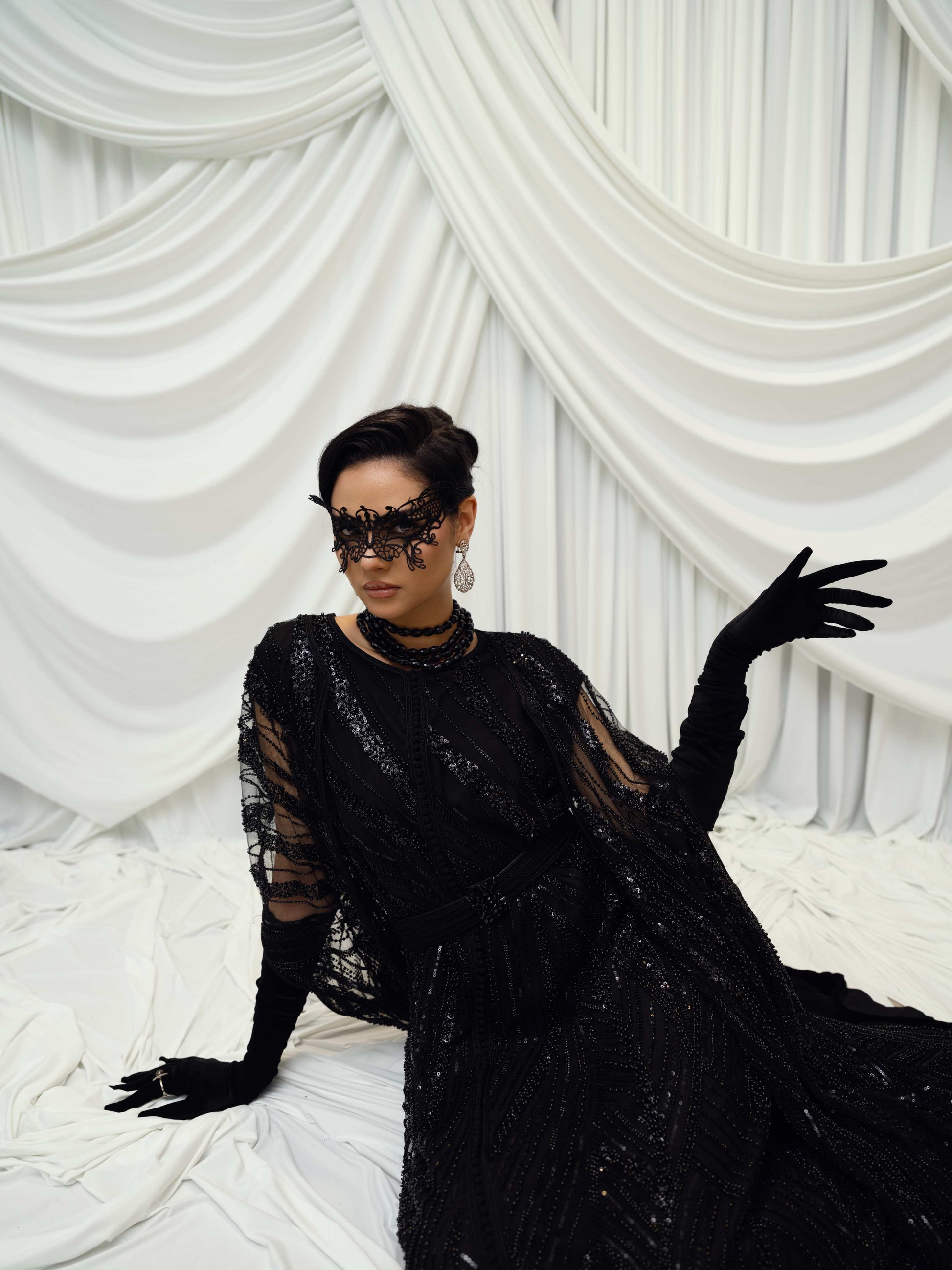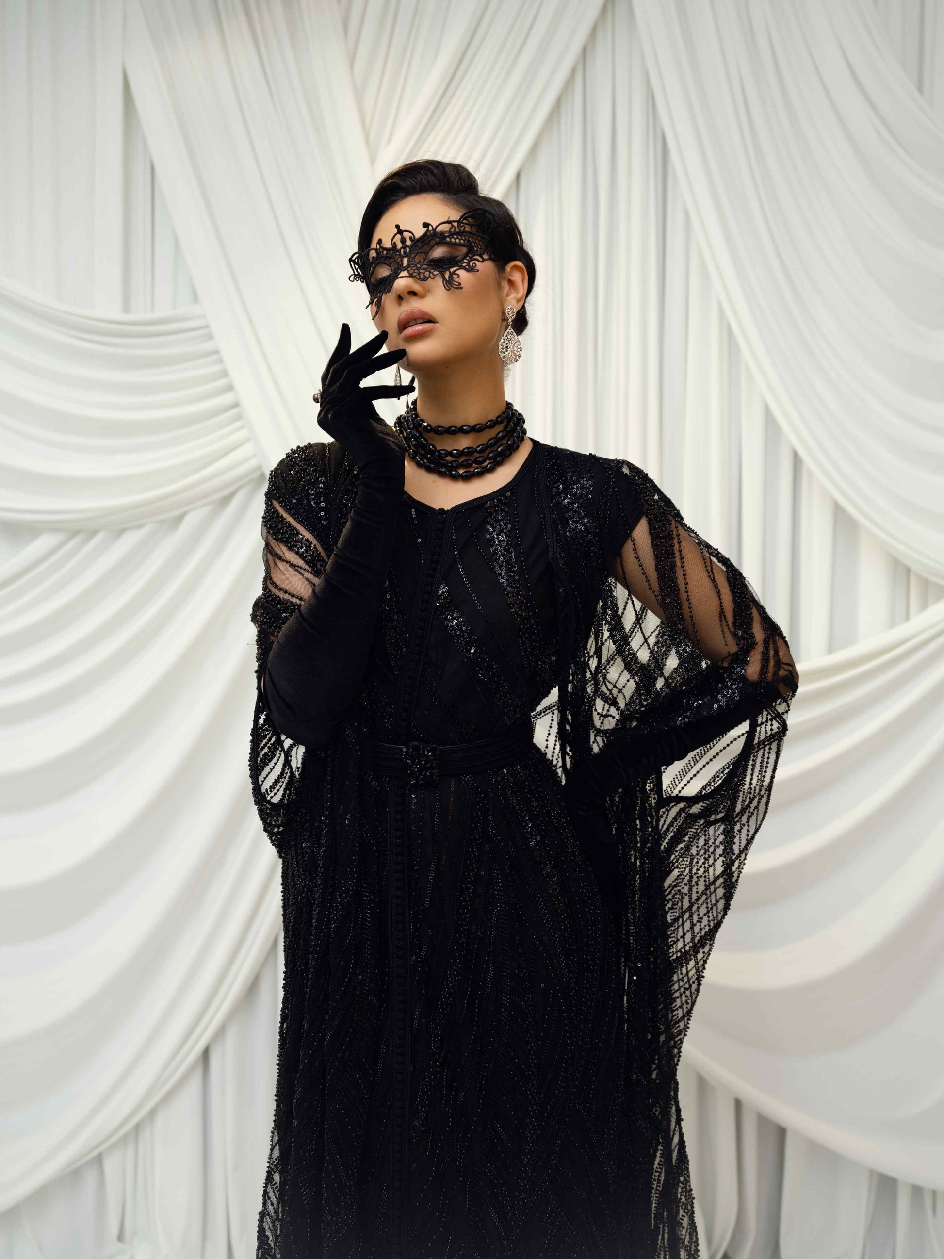 Najmat Al Layl incarne une vision moderne du caftan noir, entre finesse, éclat discret et exigence artisanale.
